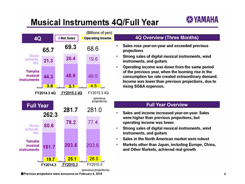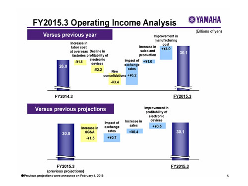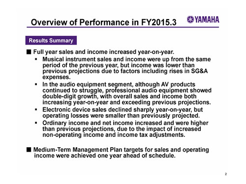 Yamaha Corporation Analyst and Investor Briefing on the Fiscal Year Ended March 31, 2015 (FY2015.3)
