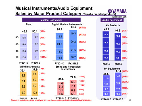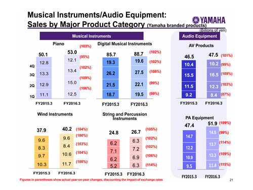 Musical Instruments/Audio Equipment:Sales by Major Product Category (Yamaha branded products)