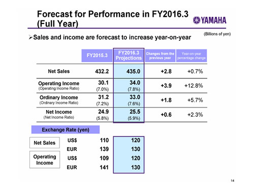 Forecast for Performance in FY2016.3