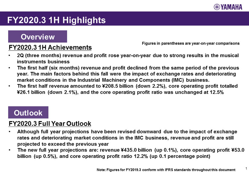 Yamaha Corporation Analyst and Investor Briefing on Second Quarter of FY2020.3