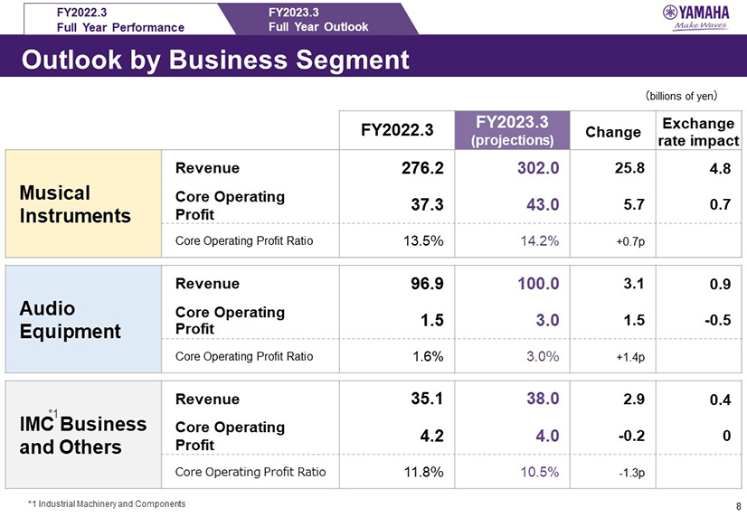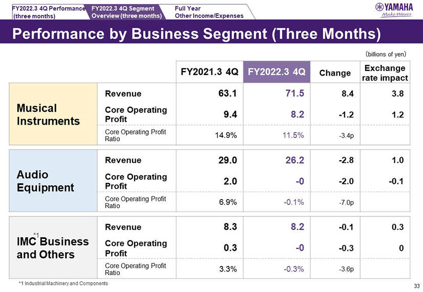 Musical Instruments Segment Revenue and Core Operating Profit