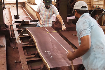 Indian Rosewood is a species of the prominent Indian genus Dalbergia that is distributed primarily in the Karnataka and Kerala regions of the southern part of the Indian continent. It has long been recognized as a high-end material for luxury furniture and guitars, and in India, is even more precious than teak (Tectona grandis), which is valued as a luxury material worldwide. It is used in a wide range of applications such as railway sleepers, building materials, and wooden machine tools. While Hubballi in Karnataka boasts large numbers of naturally grown large-diameter trees, most of the timber currently in circulation was planted as a shade tree on British-owned coffee plantations in the early 1900s and grew into artificial forests. The heartwood of Indian Rosewood is a useful material with an air-dried density of 0.7 to 0.9 g/cm3 and is exceptionally durable and easy to process. Wood from the natural native forests and the artificial forests is remarkably different in color—the former is a deep reddish purple, while the latter is dark brown. Forests have long been planted in India and Southeast Asia, with Indian Rosewood plantations in Indonesia going back to the early 1900s. Widely distributed today, timber from these plantations is called Sonokelin, and is currently used for the back and side boards in guitars, where it rivals those models that use mahogany for the same parts.