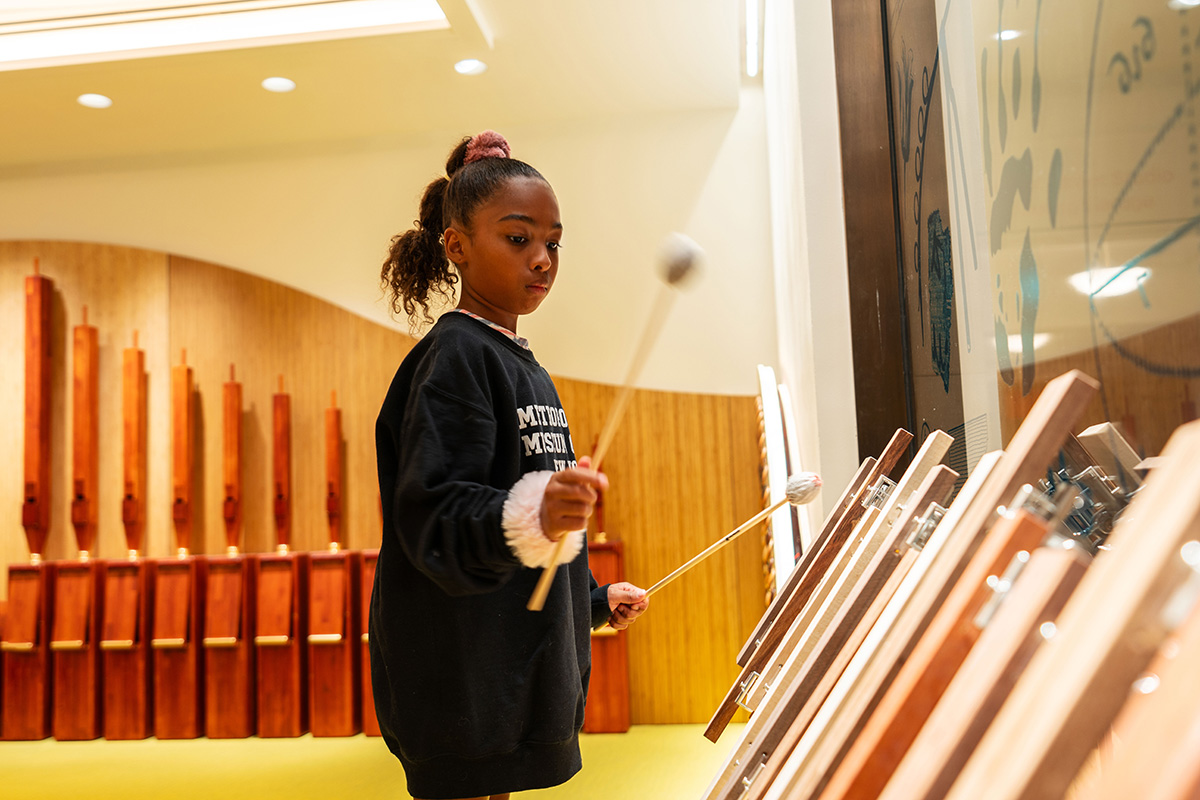 Meanwhile, what surprised Washio most about the Interactive Musical Station was the energy and creativity the children displayed. In "Marimba Woods," where children use mallets to strike soundboards made of different types of wood, many began to experiment beyond the intended setup, hitting other objects like glass and the floor. “While I sometimes get nervous about them damaging the instruments and facility,” Washio admits, “seeing the kids eagerly trying to create new sounds is a clear sign that I accomplished exactly what I set out to do.”