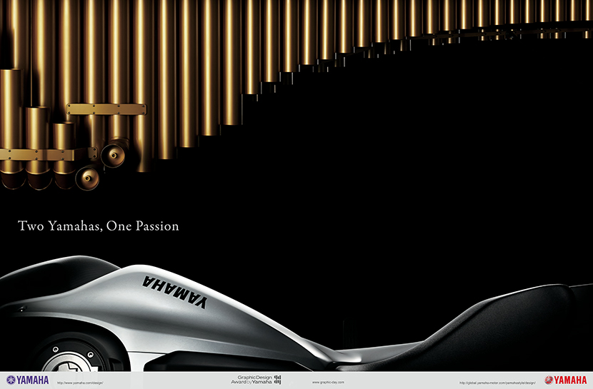 The curves created by the differing lengths and thicknesses of the resonator pipes of a marimba, and the curved surface from the tank to the seat, designed for optimal air resistance and ergonomics. Each was designed for functionality, yet is also imbued with emotional aspects. The curve of the marimba resonators announces the instrument’s presence on the stage and inspires the marimbaist’s trust, while the curve of the motorcycle enhances unity with the motorcyclist and heightens their expectations for the ride ahead.