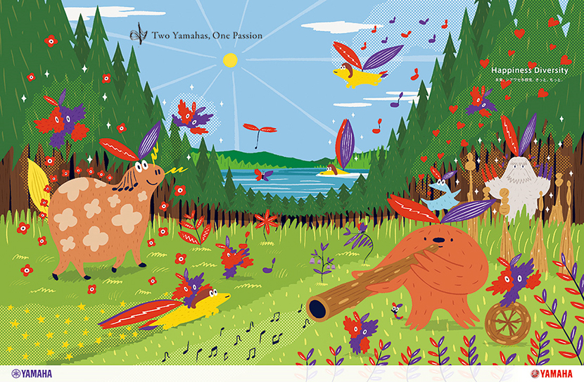 With this advertising series, we’ve created some entertaining characters to convey the essence of the Yamaha brand, expressing a world full of happiness where these characters coexist through “biodiversity”.