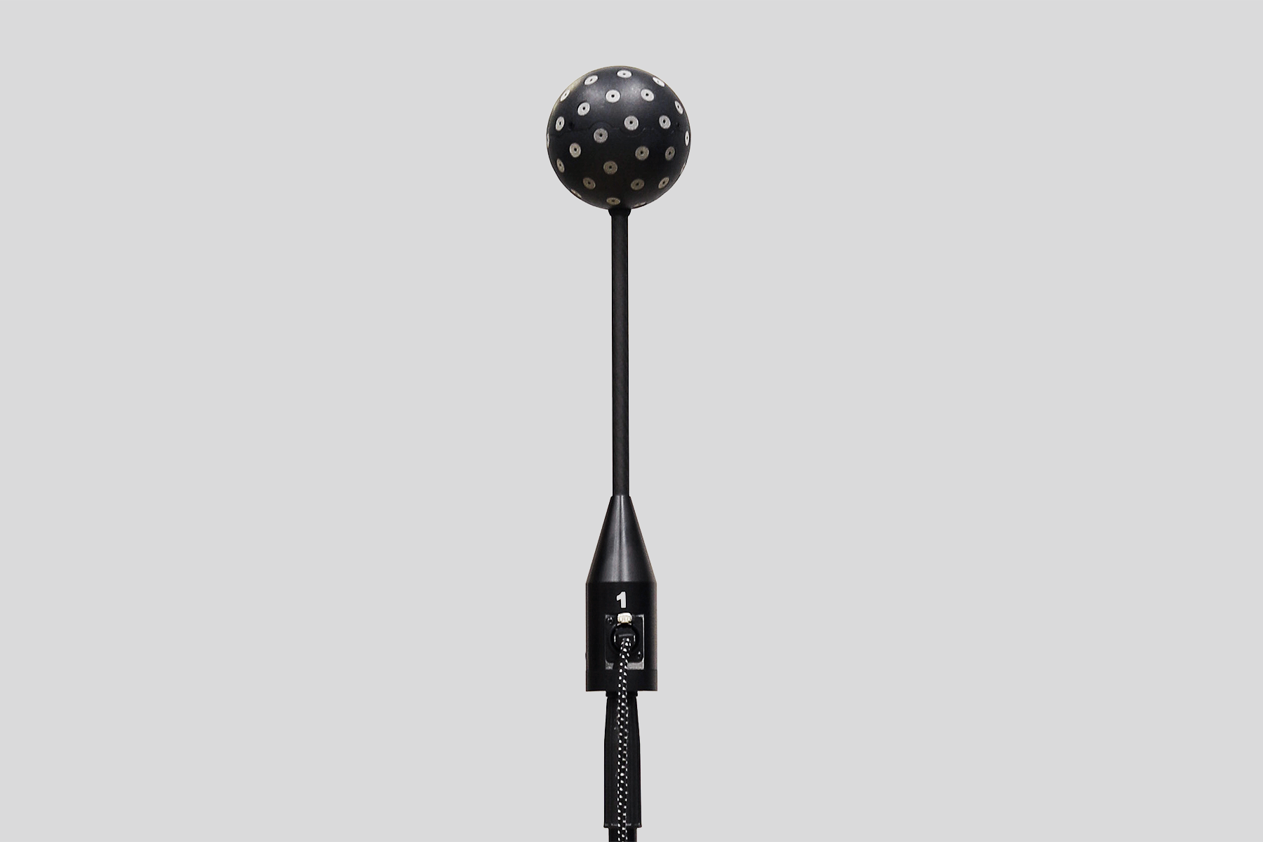 The microphone arrangement uses a spherical t-design, which achieves zero-error in the spherical harmonic domain, improving over ViReal Mic 1. Based on testing, we have confirmed that performance capturing 5th order Ambisonics is the same when using either 60 or 64 microphones, so we have adopted the use of 60 microphones.