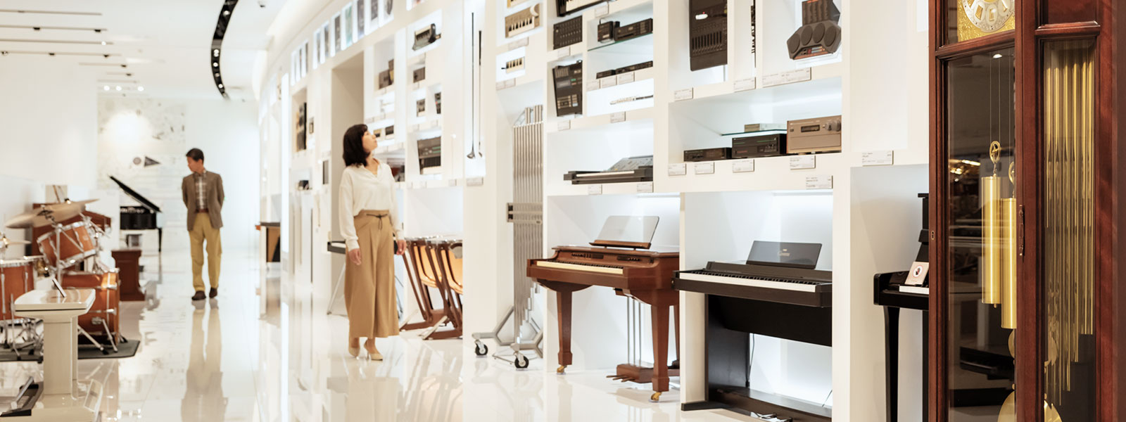 - 一部の楽器は試奏可能ですが、企業ミュージアムという性格上、練習目的や長時間の演奏・極端な音量での演奏はご遠慮いただいております。また、アコースティックピアノでは楽譜を見ながらのご試奏はご遠慮いただいております。スタッフがお声がけさせていただく場合がありますのでご了承ください。