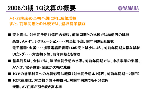 2006年(平成18年)3月期 第1四半期決算説明会 音声付スライド