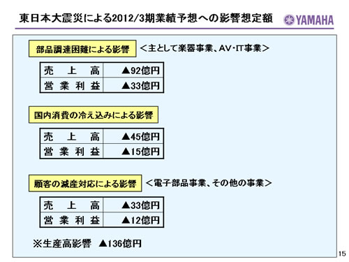 東日本大震災による2012/3期業績予想への影響想定額