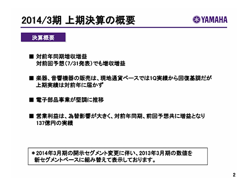 ヤマハ株式会社 2014年3月期 第2四半期決算説明会