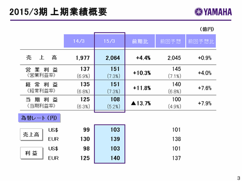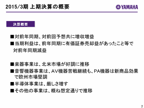 ヤマハ株式会社 2015年3月期 第2四半期決算説明会