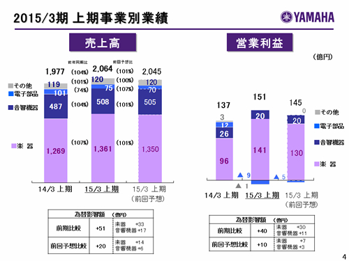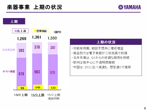 楽器事業 上期の状況