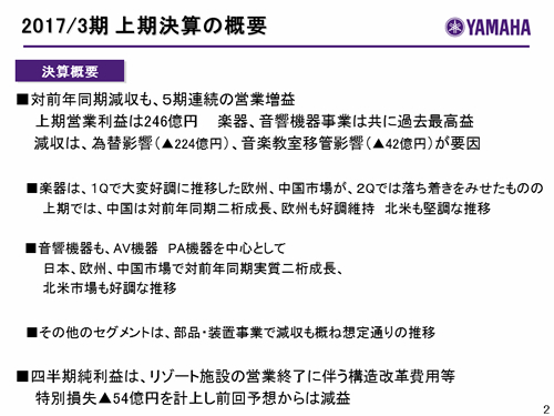 2017/3期 上期決算の概要