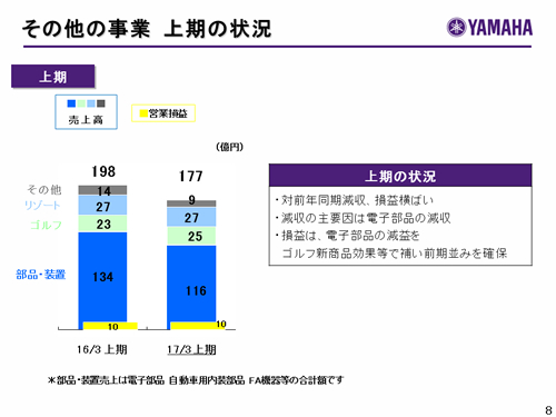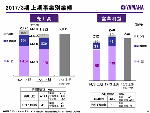 楽器事業 上期の状況