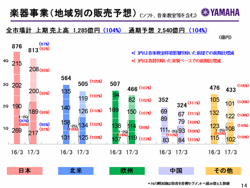 楽器事業(地域別の販売予想)