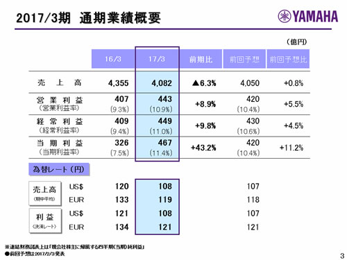 ヤマハ株式会社 2017年3月期 決算説明会