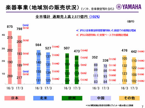 楽器事業(地域別の販売状況)