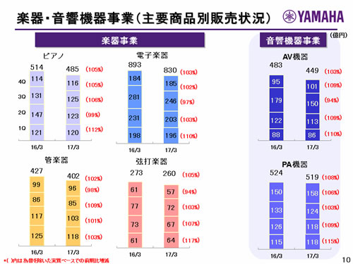 楽器・音響機器事業(主要商品別販売状況)