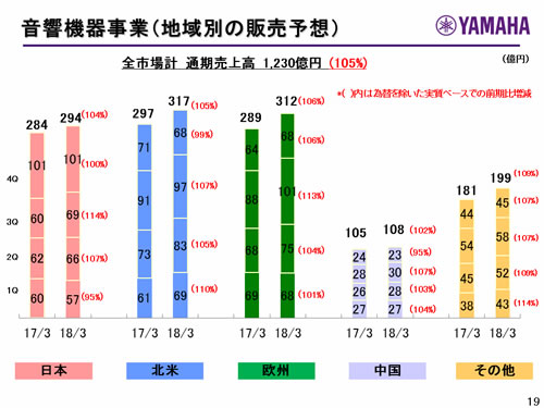 楽器事業(地域別の販売予想)