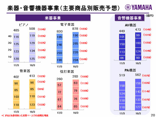 楽器・音響機器事業(主要商品別販売予想)