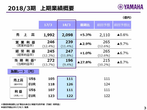 ヤマハ株式会社 2018年3月期第2四半期 決算説明会