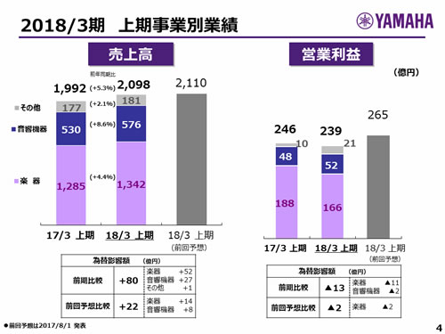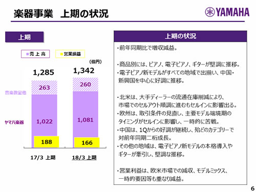 楽器事業 上期の状況