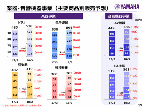 楽器・音響機器事業(主要商品別販売予想)
