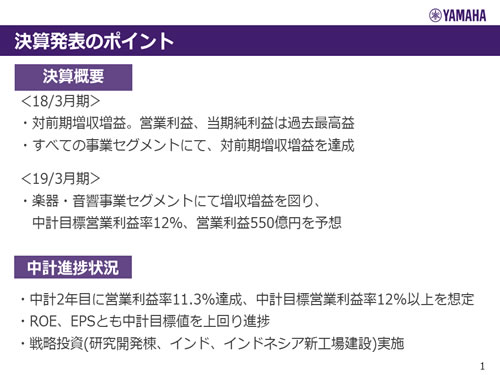 ヤマハ株式会社 2018年3月期 決算説明会
