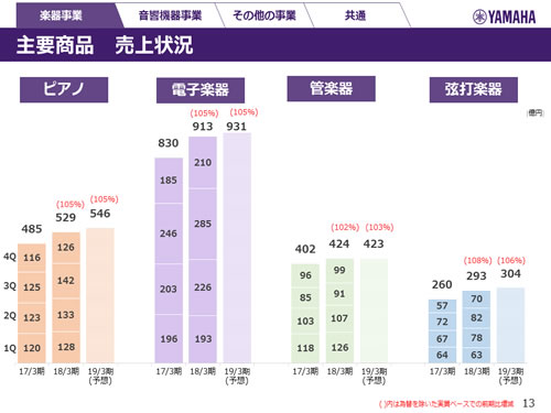 楽器事業 主要商品 売上状況