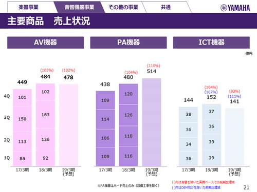 音響機器事業 主要商品 売上状況