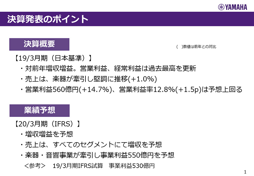 ヤマハ株式会社 2019年3月期 決算説明会