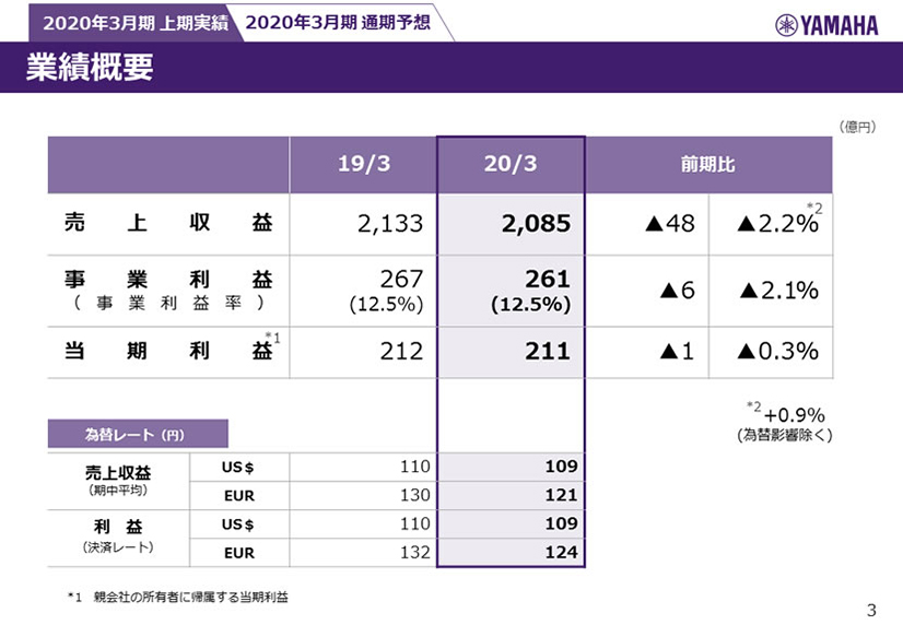 ヤマハ株式会社 2020年3月期 第2四半期決算説明会