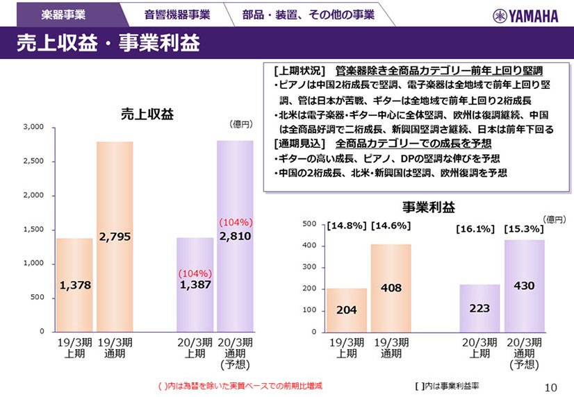 楽器事業 売上収益・事業利益