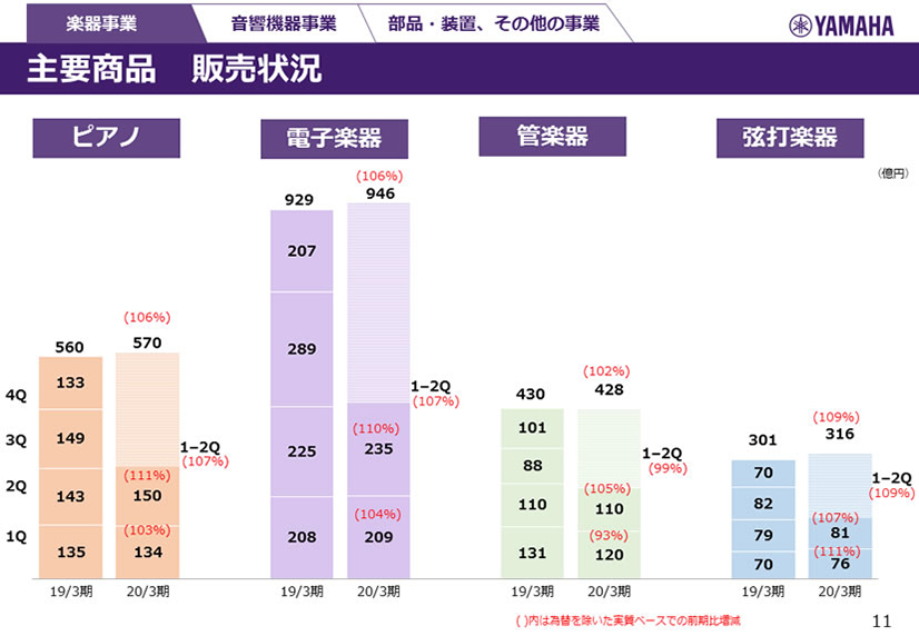 楽器事業 主要商品 販売状況