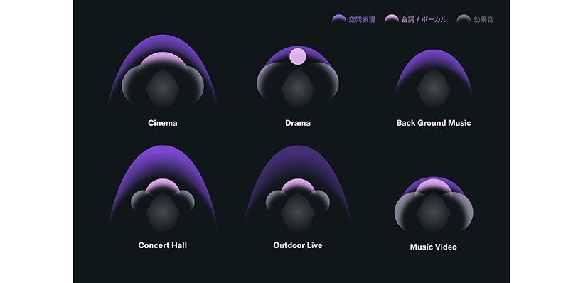 - コンテンツに合わせた音場で、音楽・映像への没入感を高める「サウンドフィールド」モード