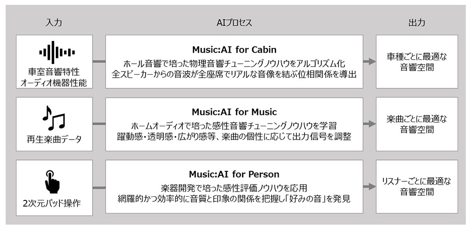 ヤマハ株式会社(以下、当社)は、AIの活用により車室音響を最適化し、新しい音楽体験を提供する技術「Music:AI®」を開発しました。2025年の量産開始に向けて開発中のハイエンドアンプに本技術を搭載し、国内外の自動車メーカーへ販売します。