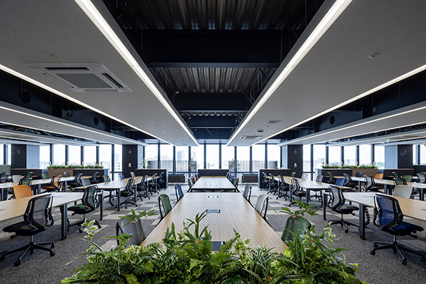 このオフィス棟は、地上12階、延べ面積約22,000m²の規模を有し、主に本社機能の中枢を担う楽器・音響事業部門、営業部門、コーポレート部門の約1,000名が集結します。