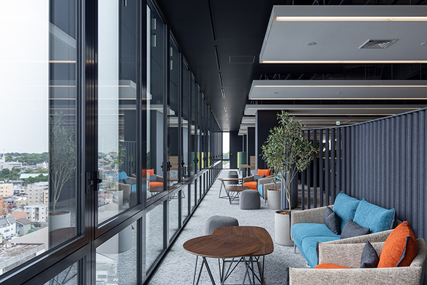 オフィス棟と2018年4月に完成した開発棟(本社21号館)を含む、隣接する「イノベーションセンター」の3つの建物とは、従業員が活発に往来できるよう通路で接続しています。これにより、生産・開発・営業・スタッフの各機能を有機的に結合させてイノベーションの誘発を促進し、そこで創出した価値を、迅速かつより効果的にお客さまや社会にお届けするための体制が整いました。