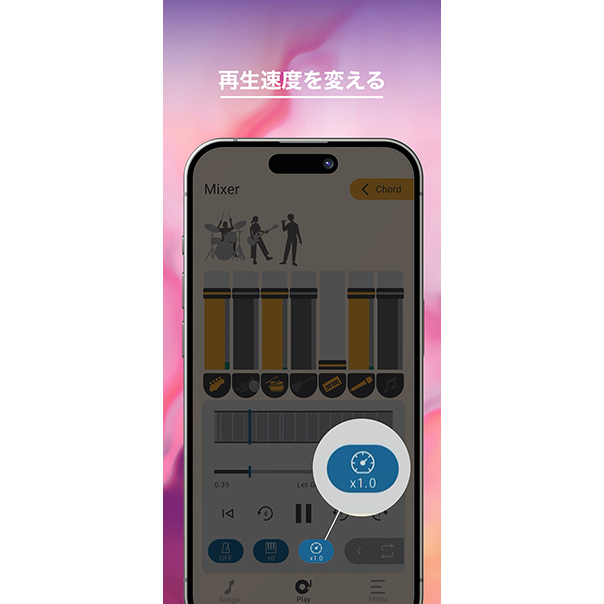- 再生速度変更機能:テンポを落として細かいフレーズの練習が可能
