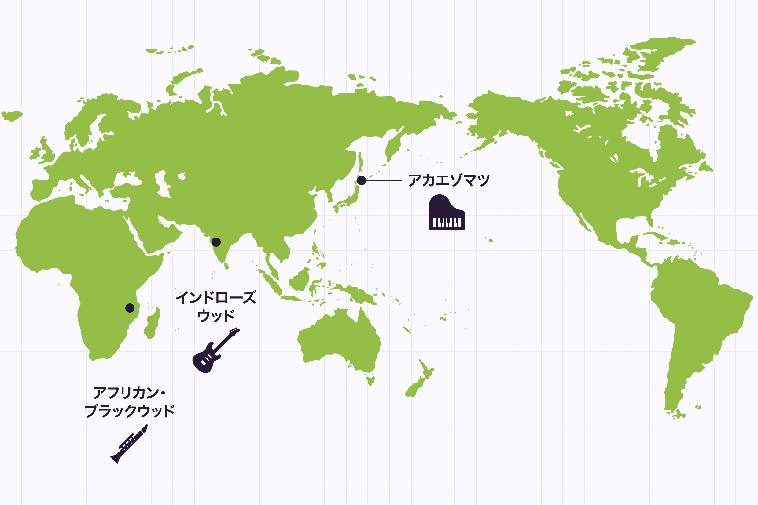 楽器に欠かせない木材、その中でも楽器の性能や価値に直接大きな影響を与える木の種類に着目し、