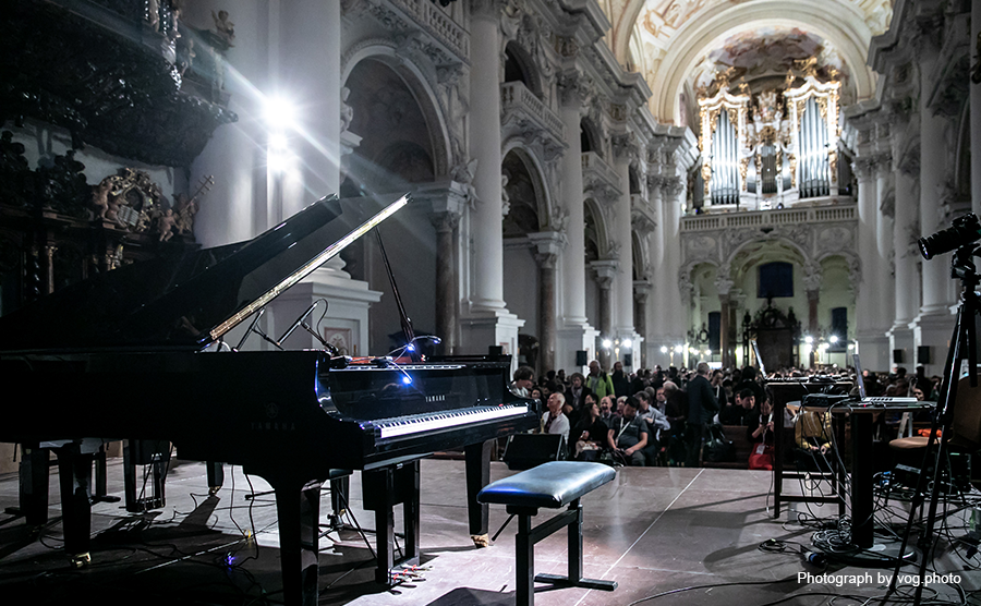 会期3日目の9月7日(土)に聖フローリアン修道院にて演奏会が開催され、AIシステムによるピアノ独奏曲をはじめ、フランチェスコ・トリスターノとのピアノ二重奏やリンツ・ブルックナー管弦楽団のメンバー(バイオリン、フルート)との三重奏といった“現代の演奏家との時空を超えた合奏”も披露しました。いずれの演奏楽曲も学習データには含まれておらず、AIは目標となる音源情報が無い中でどこまで彼の音楽性に迫ることができるのか、そして合奏という協調作業の中でどこまで人間との関係性を構築できるのかに注目が集まりました。