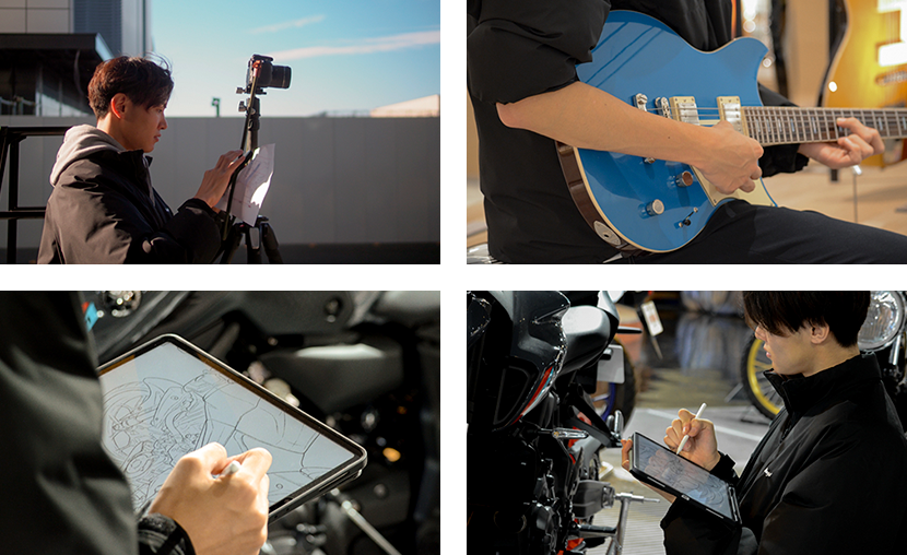 楽器やバイクから繋がっていく様子が伝わるようにしました。